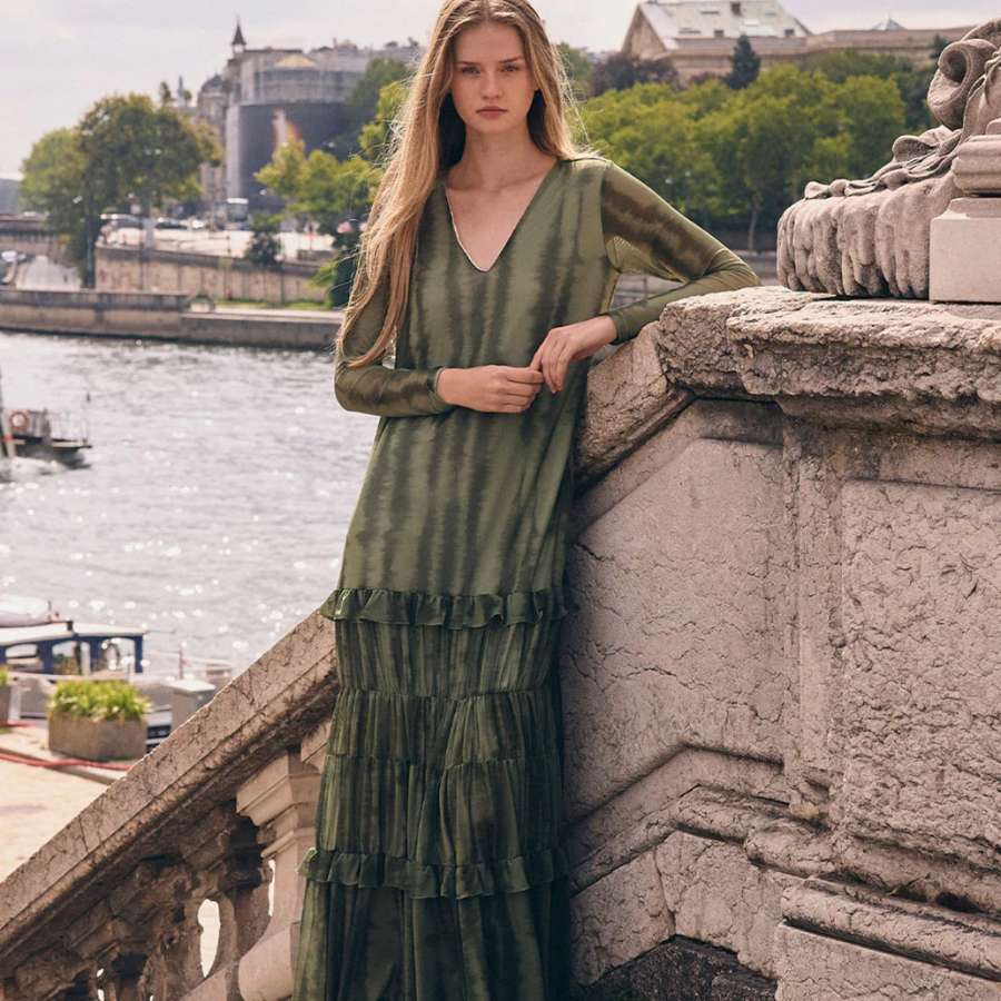 Set of shirt and pant. Made of 100% linen, in nude colour and print of flowers and tigers that give that touch of exclusivity to the design.